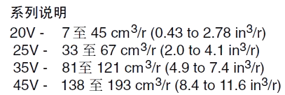 前注 系列說明 止口說明 幾何排量 油口連接 油口連接變型 安裝型式 軸伸 出油口位置 設計號 旋轉方向 特殊后綴