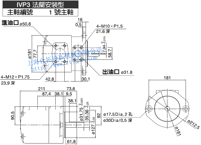 子母葉片定量泵IVP4(1號平鍵主軸)尺寸圖下載 子母葉片定量泵IVP4(86號平鍵主軸/1&86號主軸)尺寸圖下載
