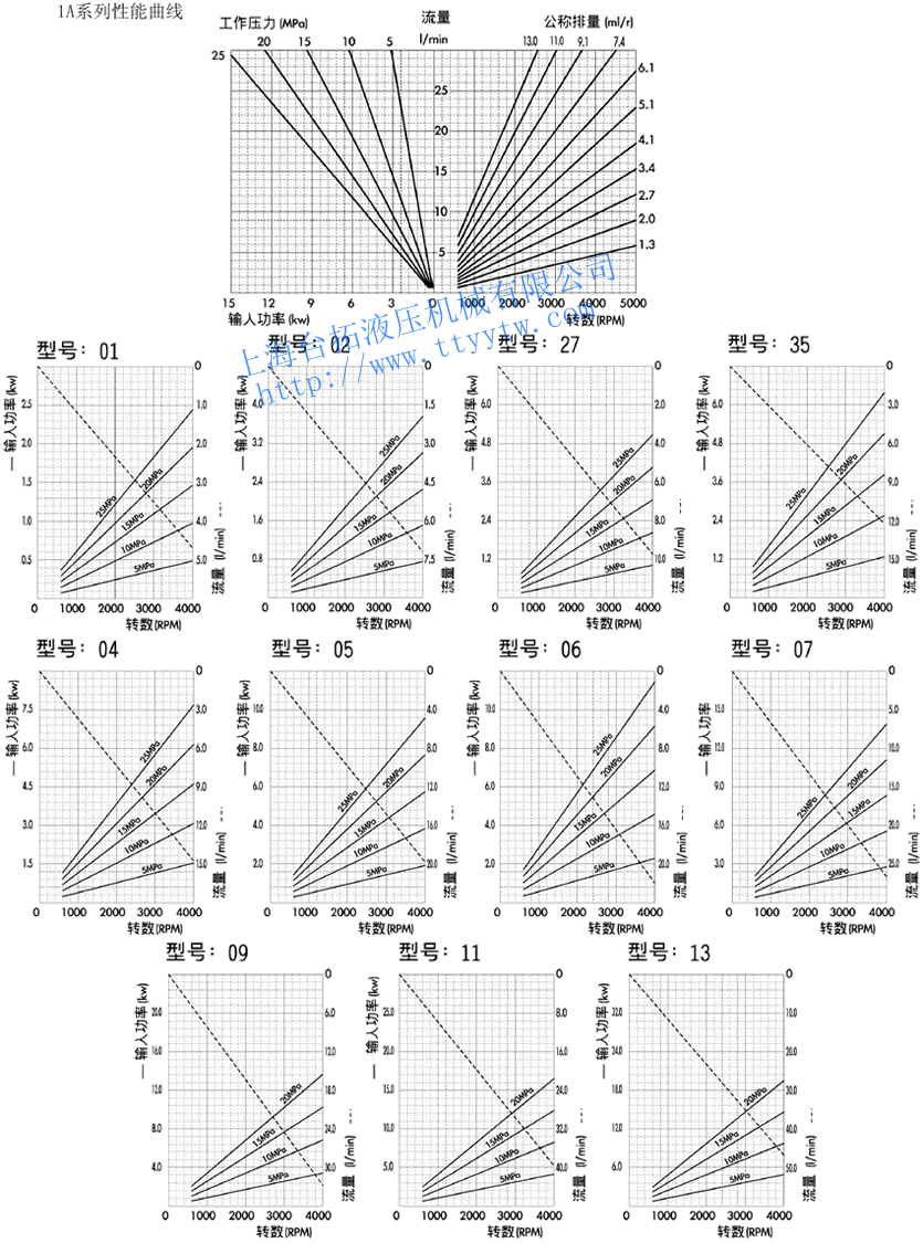 出油口 PT1/2"1AG1P09 9.1 18 20 53.54 106.8 1.61 1AG1P11 11.0 56.54 112.08 1.72 1AG1P13 13.5 60.04 119.08 1.84 高壓齒輪泵1AG1P性能曲線