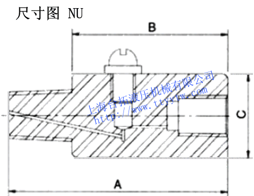 kg尺寸(mm) A B C NU-02 1/4" 0.5 7 0.11 43 29 21 NU-03 3/8" 1 0.16 45 31 23 NU-04 1/2" 2 0.2 52 35 27 壓力表開關NU尺寸圖