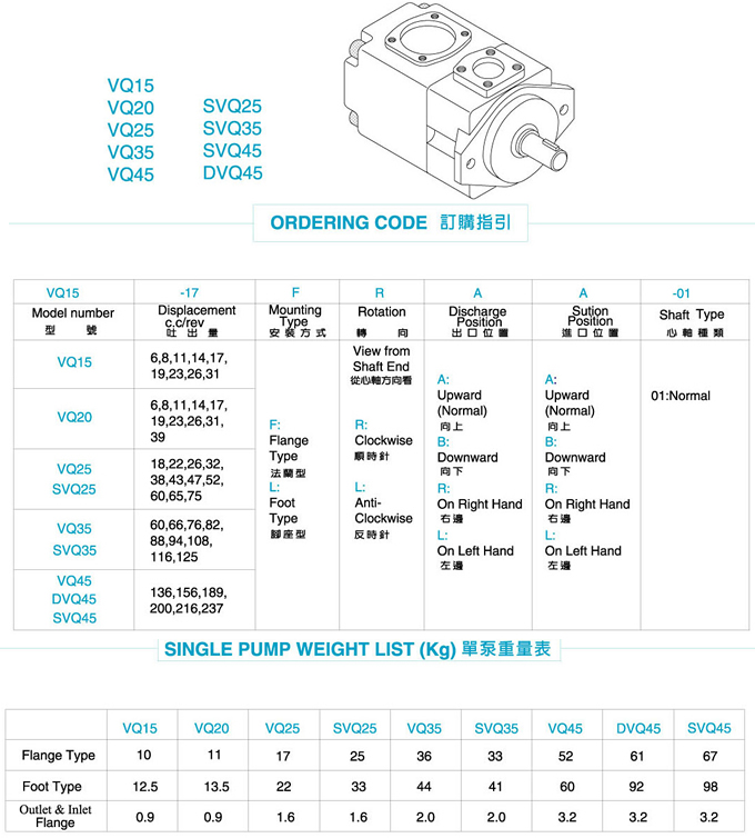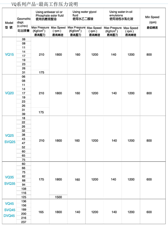 定量高壓單泵SVQ25/35/45規(guī)格表