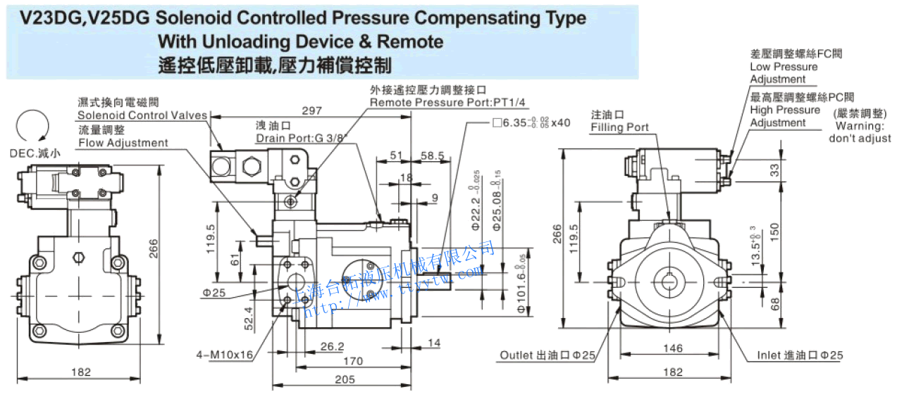 變量柱塞泵V23D,V25D尺寸圖下載 變量柱塞泵V23DG,V25DG尺寸圖下載