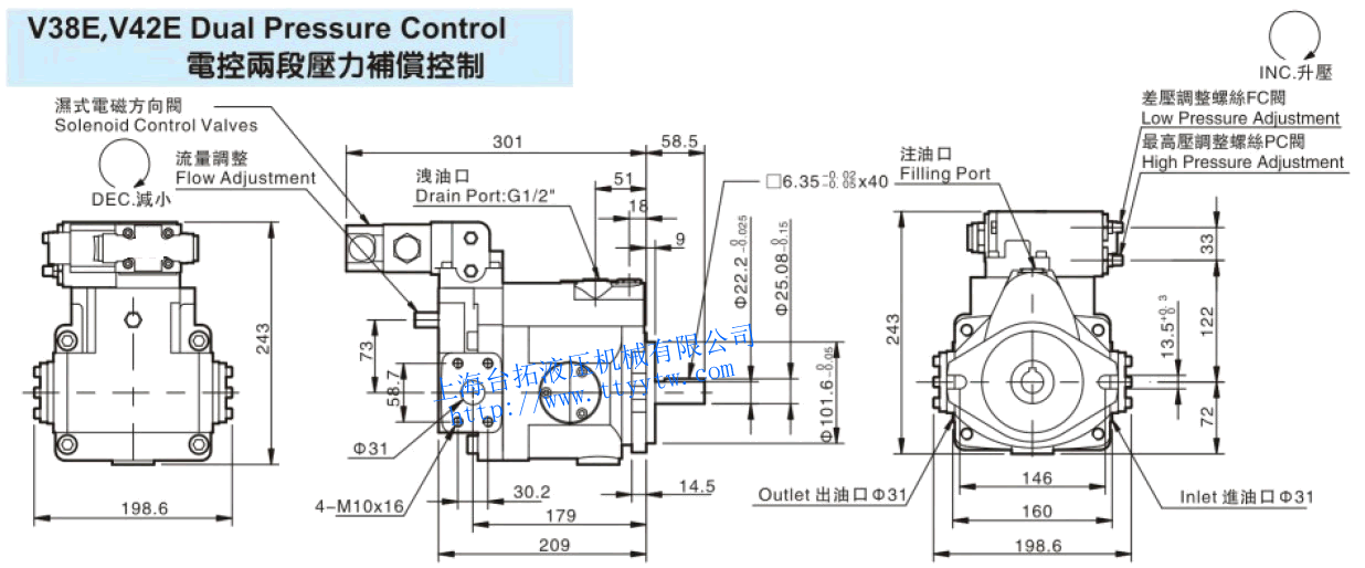變量柱塞泵V38G,V42G尺寸圖下載 變量柱塞泵V38GJ,V42GJ尺寸圖下載