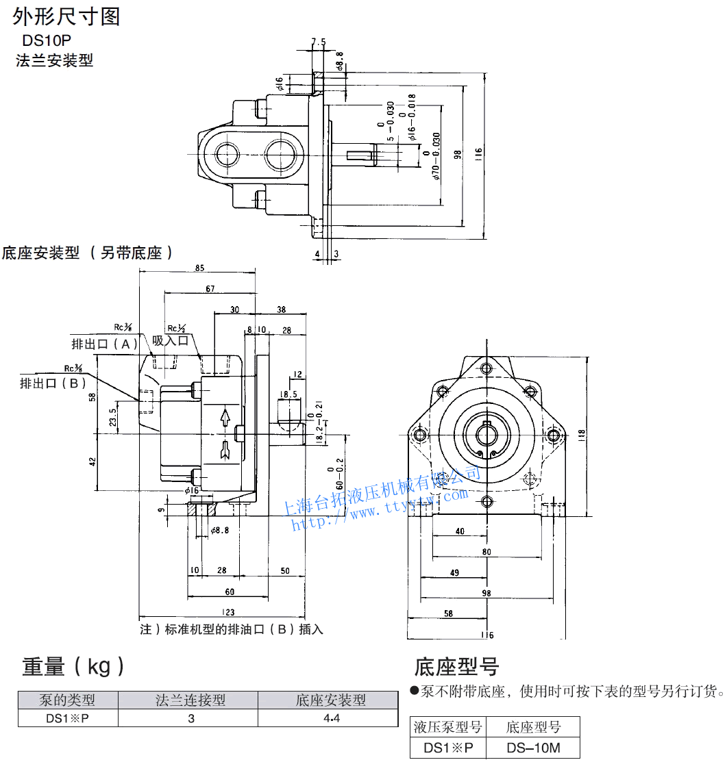 L:逆時(shí)針(左轉(zhuǎn))緊湊型單級葉片泵DS-P規(guī)格表
