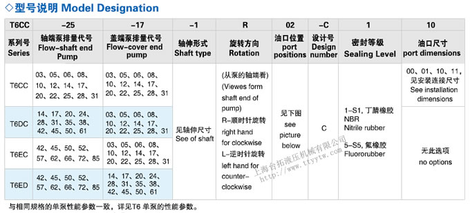 雙聯葉片泵T6系列型號說明
