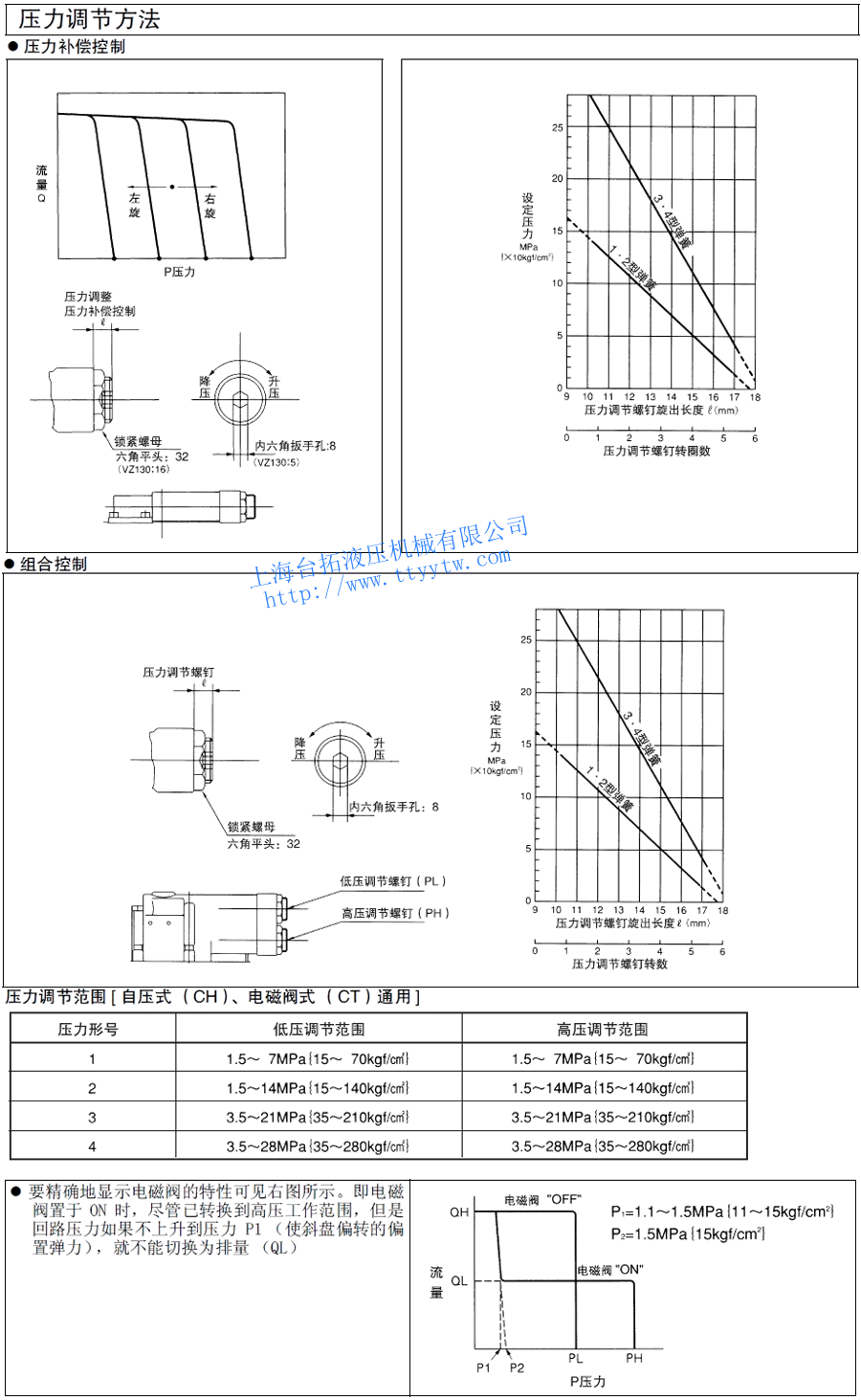 Kg最高 額定 VZ50 50.2 28 25 500~1800 0~90 40 VZ63 63.0 28 25 500~1800 0~113 47 VZ80 79.6 28 25 500~1800 0~143 55 VZ100 104.6 28 25 500~1800 0~188 75 VZ130 135.9 21 17.5 500~1800 0~244 105 變量柱塞泵VZ壓力調節方法