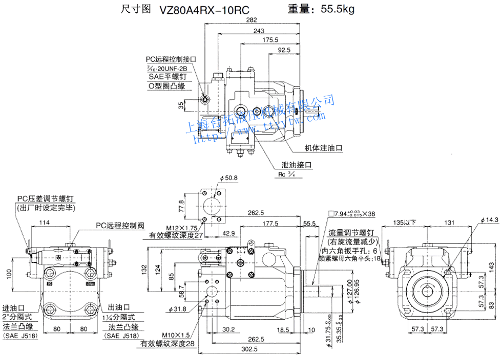變量柱塞泵VZ80C*RHX-10尺寸圖下載 變量柱塞泵VZ80C**RJ*X-10尺寸圖下載